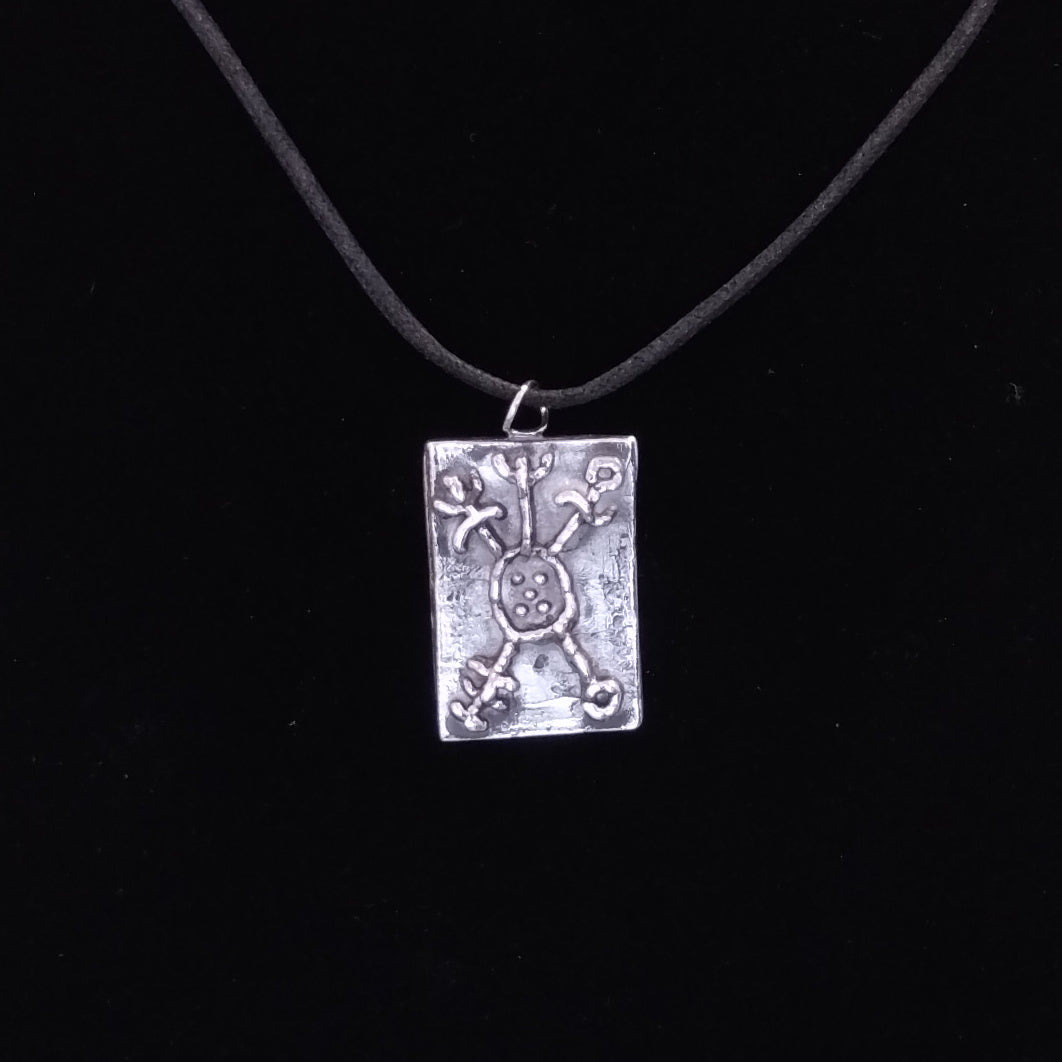 These pendants are cast and constructed from sterling silver and include a 20-inch waxed cotton cord with sterling silver wire wrapped ends and simple clasp.
