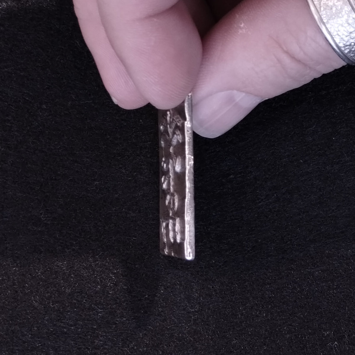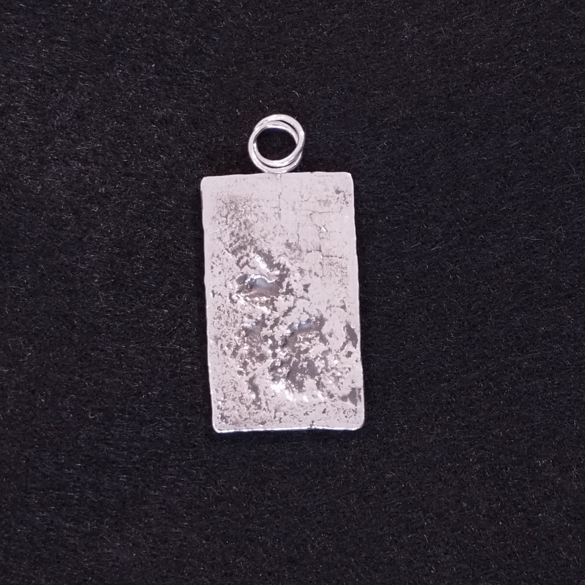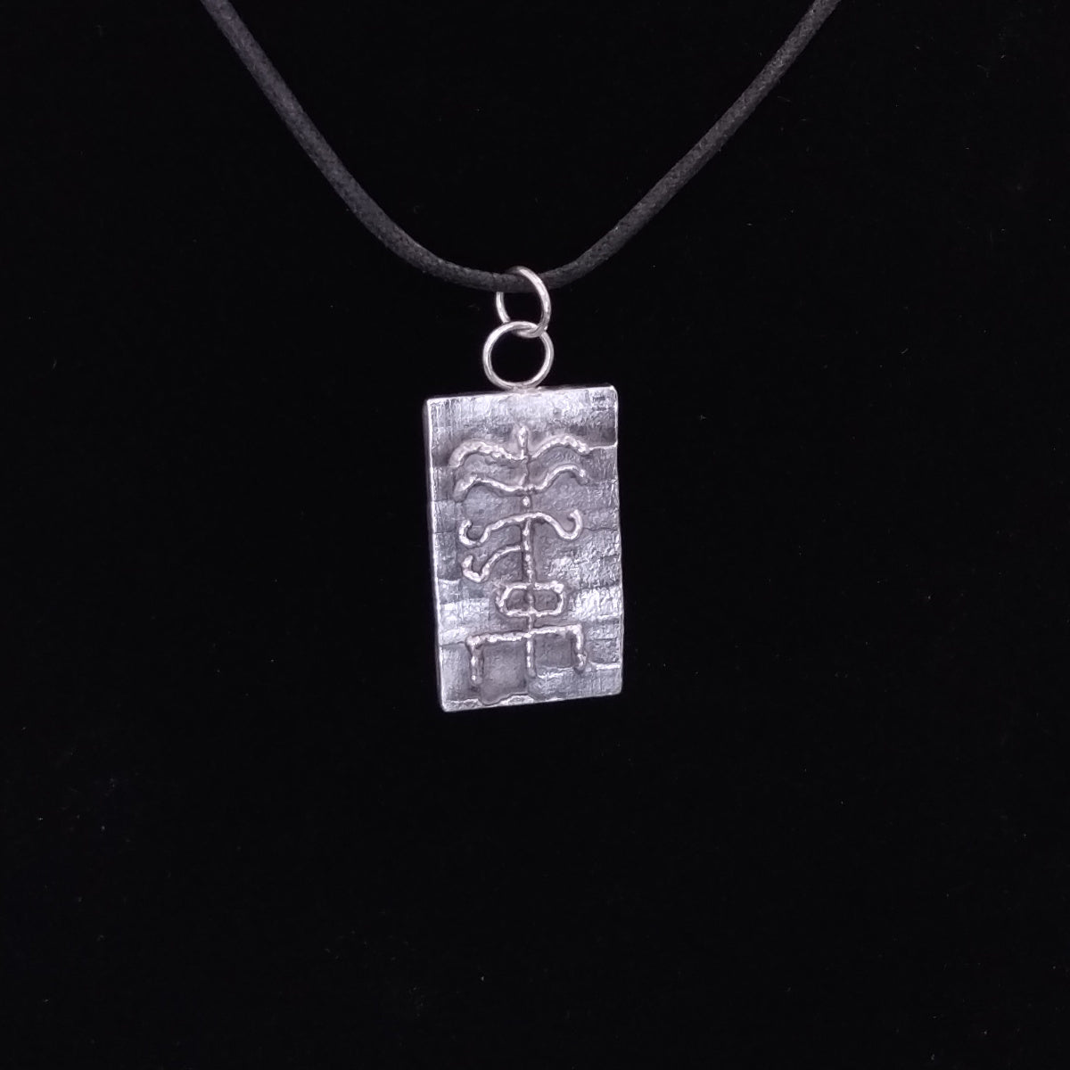 These pendants are cast and constructed from sterling silver and include a 20-inch waxed cotton cord with sterling silver wire wrapped ends and simple clasp.