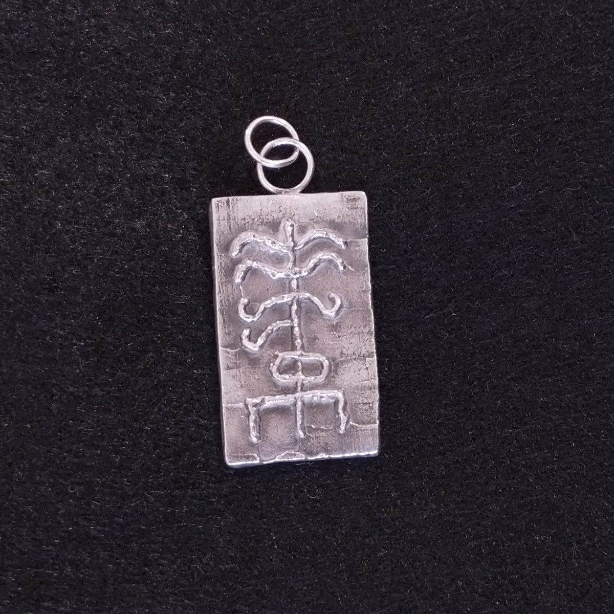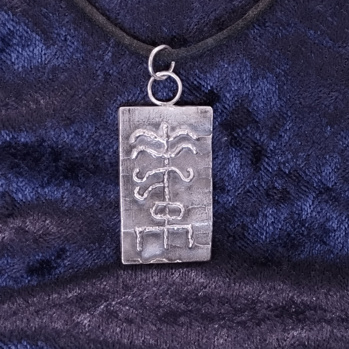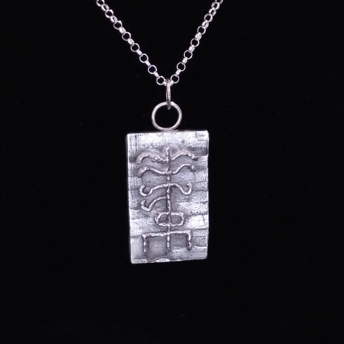 This pendant design is hand carved into jeweler's charcoal and then individually hand cast. Due to the process involved in making this pendant, each one is unique. The pictures show are examples of various castings. Each has imperfections and the bail (which holds the pendant to the necklace) varies in style.